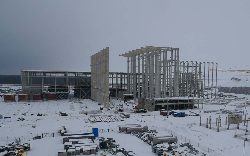 Будет выполнен монтаж металлоконструкций в объеме 9 000 тонн, бетонные работы в объеме 4 000 кв.м, зашивка стен фасадов - 10 000 кв. м, устройство кровли - 8 000 кв. м.